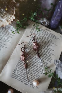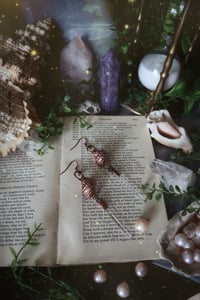 These earrings feature a pair of real sea shells with a stunning set of lemurian crystal points.