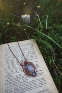 The Moonlit fern portal is a magical portal. Created with a stunning herkimer diamond and real ferns plated in copper. Adorned with a glowing rainbow moonstone, this piece truly glows in the light.